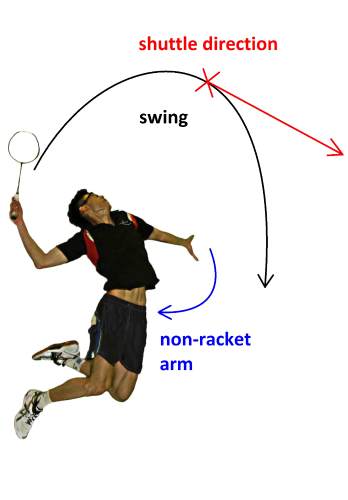 datangnya kok , Anda bisa melakukannya dengan sedikit loncatan . Teknik smash saat meloncat sama dengan smash tanpa meloncat . Perbedaannya hanya pada pembacaan titik fokus kok dan